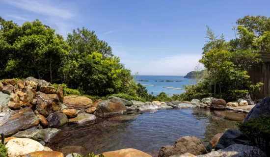 メルキュール和歌山串本リゾート&スパ。名勝橋杭岩、紀伊大島、太平洋を一望出来る温泉露天風呂。夜は星空を眺め、朝は水平線からあがる朝日をご覧ください。