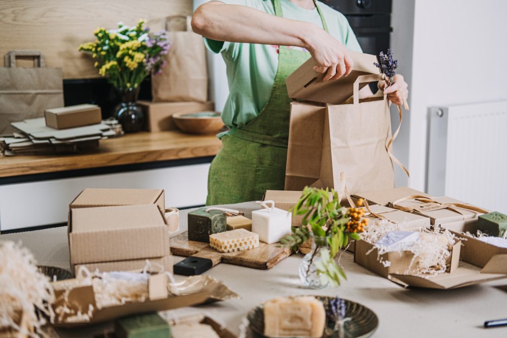 手工制作的背包、针织小饰品、天然石珠饰品等