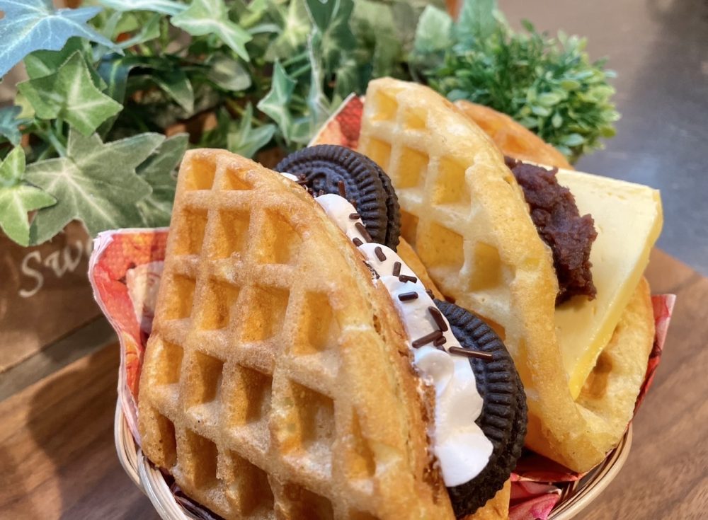 从夹着巧克力、奶糖、草莓、MIX浆果的基本产品,到饼干奶油、糖黄油、豆沙黄油等各种各样的华夫饼。