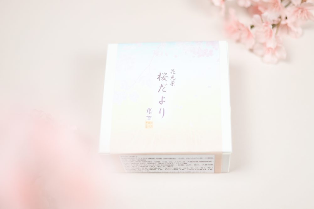 这是一个以樱花为印象制作的专用箱子里,装满了“仪平”代表性的名果和与樱花相关的和式点心的赏花箱。
