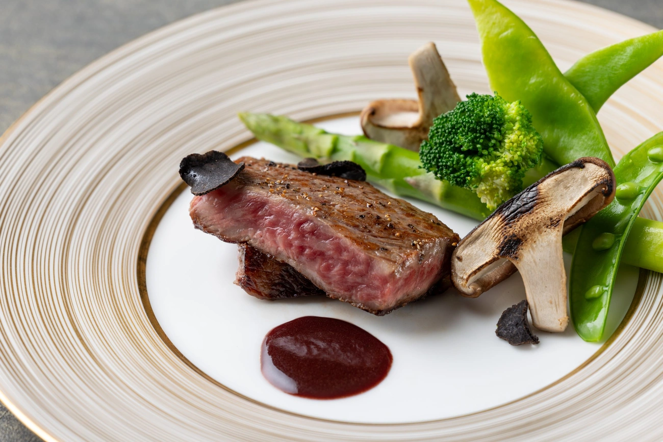 ディナービュッフェに別注料理『熊野牛ステーキ』がお1人様一皿付くプランです。