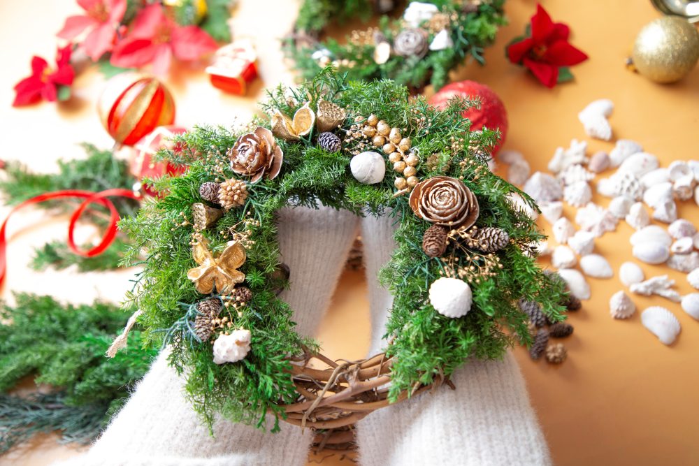 在花店的精心講解下,一邊選擇樹的果實和綠色,一邊手工製作世界上獨一無二的聖誕租。
